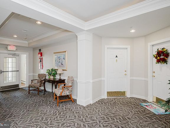 Main level handicap accessible unit with private back entrance as well as the main entrance. This two bedroom, two bathroom unit is 55+ and has modifications. Just inside the door you'll find 9-foot ceilings and a foyer with ceramic tile flooring with huge closet for storage. There is an eat-in kitchen with 42-inch cabinets, granite counters, backsplash along with a double oven and gas cooktop. The large living room has a ceiling fan, surround sound and new luxury vinyl plank flooring that extends into the dining room with crown and chair molding with tray ceiling. The laundry is tucked away with shelving and utility sink and LVP flooring. The primary bedroom has a huge walk-in closet, sitting room, custom blinds, tray ceiling as well as an attached bathroom with grab bars, double sinks and stall shower. The second bedroom is on the opposite side of the unit along with a second full bathroom. The unit walks out to a nice patio backing to woods with a utility closet. This community is conveniently located near downtown Bel Air with peaceful surroundings. Other features include new furnace (2022); new toilets; wired for alarm system. Up to two pets allowed.