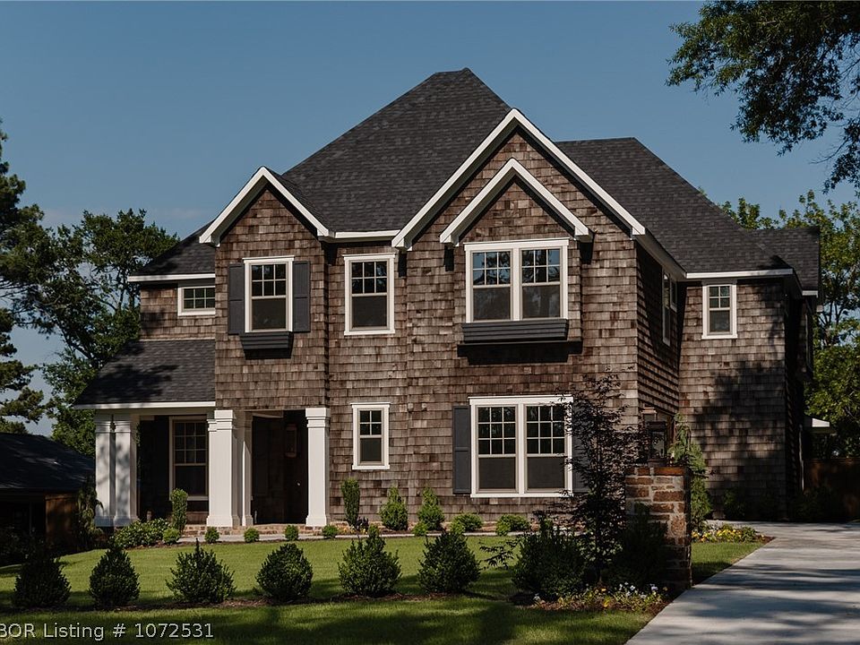Welcome to an exquisite residence nestled in the heart of Fort Smith, just off Free Ferry Road. This distinguished home by Carrington and Goddard Design Group seamlessly marries the allure of the Pacific Northwest with the refined comfort of Southern living. Crafted with cedar siding sourced from Oregon and adorned with captivating gas lantern exterior lighting, every detail exudes sophistication. Inside discover the incredible chef's kitchen boasting quartz slab countertops and backsplash, custom white oak cabinetry, JennAir professional appliances including a 48" gas range with double oven, 2 dishwashers, ice machine, and wine refrigerator. Entertain in style within the upstairs lounge area, complete with a wet bar and beverage center, find tranquility by the cast stone fireplace in the downstairs living space, or, perhaps, lower the retractable patio screens for a relaxed evening by the outdoor living wood burning fireplace. While the primary bath is a sanctuary of opulence with marble floors, quartz clad shower walls, and a walk-in closet that fulfills every desire, the expansive upstairs bedrooms are adorned with window seats, individual private vanities with seating space, and walk-in closets featuring built-in mirrors. Additional special features include meticulous smooth wall finish, wood flooring throughout main areas and all bedrooms, a bespoke curved staircase, Marvin exterior doors, solid core interior doors, Emtek door hardware, wood ceiling beams in the majestic 20’ living area, Monogram wood clad refrigerator, two sets of GE washers/dryers and a charming front porch swing. With designer fixtures and finishes throughout, this home offers unrivaled elegance, style, and functionality. Take this opportunity to own this remarkable home situated on 0.44 acres in one of Fort Smith's most desired neighborhoods. Contact us today for your exclusive private showing.