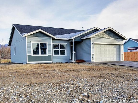Panoramic unobstructed Mountain Views from this ranch home in Springer Park.Open spacious floor plan,kitchen with island & pantry,refrigerator included!Open to living and dining room with fireplace.Master bedroom with walk in closet and private bath.Granite countertop,laminate floors,ceiling fan,& back deck.Great location for commuters.Lots of recreational opportunities. Alaska USA will pay $1500 of the buyers closing costs and the builder will match so buyer can have $3000 of their closing costs paid if the use Alaska USA.