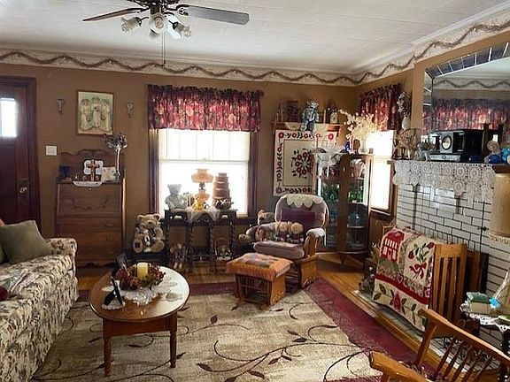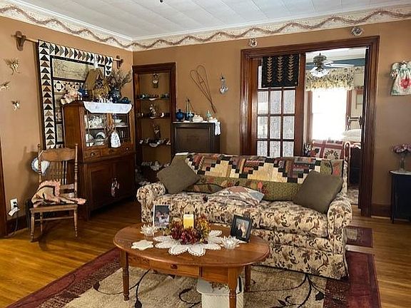 Just sit and rock on the front porch and enjoy life!!! You will just feel all the love when you walk through the door of this charming 1 1/2 story home. This very well maintained four bedroom, 1.75 bath home has had lots of TLC!! Updated kitchen with breakfast bar and loaded with gorgeous wooden cabinets plus a large pantry closet. Spacious living room & dining room boast original hardwood flooring plus one bedroom and 3/4 bath complete the main level. The upper level provides three bedrooms with supersized closets and full bath. Unfinished basement has lots of storage and includes the laundry area. Newer HVAC system. Large deck across the back of the house looking onto the covered two-car carport and fenced yard. Also a one-car detached garage, too! Don't miss out on this one!