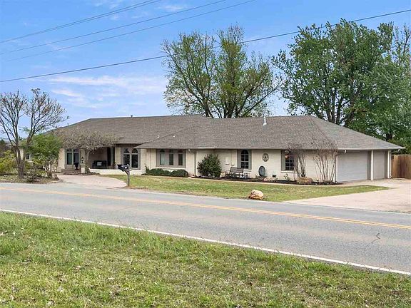 MOTIVATED SELLER! Bring offer! Huge price improvement! Use the reduction to remodel and make your ideas and visions come true!! Enjoy your spacious living inside and outside! Great square footage home all on ONE level on a great size lot. (3505 sq ft per assessor) Enjoy a circle drive, gorgeous landscaping and pergola covered areas in both the front and back. This four bedroom home has three living areas, three baths (primary bath has heated floors and a bidet with a heated seat, gourmet kitchen, formal dining, walk in storm shelter in the garage, vaulted ceilings, granite counters, large Anderson windows, and more. The gourmet kitchen has much to offer and enjoys a pass through opening into the family room. The kitchen has granite counters, island with a cooktop, double ovens, wine refrigerator, two sinks, pantry and soft close cabinets. There is another building on the property that is a guest house. It has a bedroom, half bath and a large room for hobbies of your choice/exercise room/man cave entertaining.(893 sq ft) The backyard oasis features a relaxing pool with a slide, Trex decking, green house, garden area, another storage building for outdoor equipment and a chicken house. We can leave the contact name of the lawn crew as well. Come home and enjoy your days and evenings in the peaceful backyard by the pool, by the water feature or gardening.