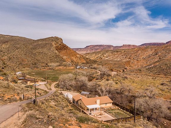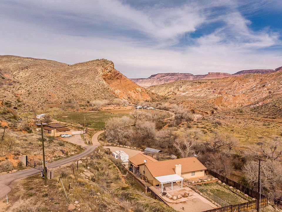 Riverfront property of La Verkin Creek! Option to purchase up to 22.8 acre-feet of water rights, upon availability. 1,180SqFt automotive shop ran for 220 and pneumatic air! Over 8 acres! Hoist, mounting plates, chain pulling posts. Additional mobile home (3rd hookup, can easily be removed), 3 septics, Fire hydrant, Home has brand new carpet