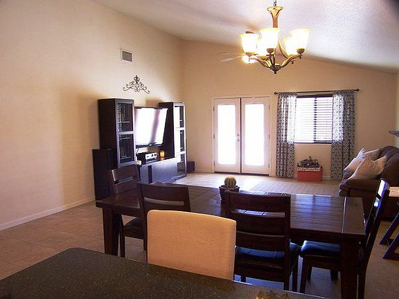 4BRM-GREAT ROOM CONCEPT HERE! Beautiful roomy, Ridgecrest Heights home built by Aspen!! Smartly designed Xeriscape front yard. Enter into a corridored ceramic tiled entryway with a 4th bedroom/office just off the right. Long, wide, and open great room contains a vaulted ceiling living room/dining room combination w/French doors to the backyard. Kitchen is loaded with full stainless appliances and sink, granite counters, recessed lighting and elegant redwood cabinets everywhere. Master bedroom wide enough for a king-sized bed and more. Check out the master bathroom-tall granite counters w/double sinks, mirrors, and a jetted tub!! Other bedrooms are spacious also with just the right hues of color. Hall bathroom is decked with granite countertop, single sink, and ceramic tile on the floor. Arched covered patio out back with extended pavers. Tankless water heater in attic. MasterCool and AC!! A GREAT CATCH AND WORTH FALLING IN LOVE WITH!