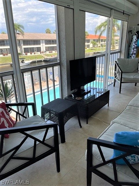 GULF ACCESS Waterfront condo, come tour this move in ready, 2 BR + DEN / 2 BA, recently painted 2nd floor unit. with vaulted ceiling in Great Rm with fabulous panoramic views of Waterfront Canal from the large (19 X 6) screened lanai, which features: electric hurricane shutters, laundry closet with Washer/Dryer, new Hot water heater and private spiral staircase down to the pool. The fully equipped kitchen features luxurious granite counters & premium stainless steel appliances. The Master suite, features large walk in closet and also has glass sliders to the Lanai with canal and pool views. Other features include: Hi efficiency AC System replaced 2019, COREtec flooring. dedicated covered carport & additional 3 x 6 outside storage closet. DOCK space is on a -1st come/1st served bases – currently you would be the 1st inline for a space. All this and Located only minutes by car to Downtown Cape Coral Entertainment District and 5 minutes to open waters of Caloosahatchee River and the Gulf by boat.