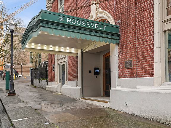 In the heart of Portland's Cultural Arts District across from the Arlene Schnitzer Concert Hall & Shemanski Park, The Roosevelt is a national historic building built in 1924 as a hotel and converted to condominiums in 2001. Unit 403 is a 1 bed + 1 bath condo with Brazilian Cherry hardwood floors & cabinets, granite counters, travertine tile, original crown moldings and woodwork. Very charming views of historic and modern architecture, plus plenty of natural light in this condo. Good amount of storage in unit, plus additional storage in basement. Very well run HOA, & the monthly fees include water, gas, electric, heat, garbage, sewer, laundry, internet, and building maintenance.
