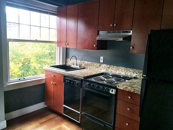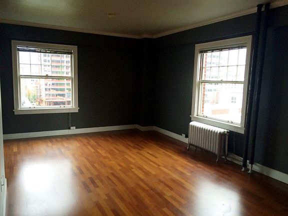 Beautiful views of the Park and the city. Partial mountain view. The ultimate in car-free living, this 7th floor, corner unit condominium is blocks from Safeway, Target, the Max, Portland State University (PSU), and the Riverfront. Walk to work, school, entertainment, everything! Wood laminate flooring throughout with tile in the bathroom. HOA fees (approx. $550 per month) cover on-site laundry, utilities, trash, recycling, and building upgrades and maintenance. Newer paint. Open floor plan. Dishwasher, refrigerator, and microwave come with the unit. Secure-access building. Unit comes w storage in the basement.