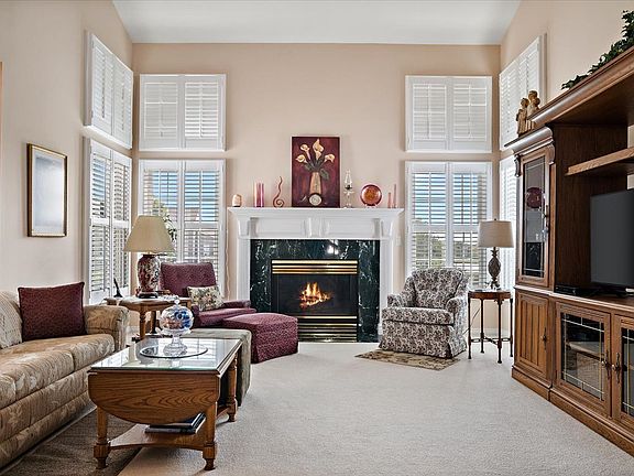 Welcome to this remarkable three-bedroom, 2.5-bathroom home, where captivating creek and lake views create a serene backdrop for your everyday living. This charming corner home offers spacious outdoor space, main floor master suite, a sunroom, loft, professionally landscaped grounds, and a host of modern updates that ensure comfort and convenience. As you step inside, you'll find a cozy main floor master suite that provides a peaceful haven. The ensuite bedroom offers convenience and privacy, while the walk-through closet space caters to your styling needs. The second living space in the basement, complete with a gas fireplace, has two windows that could more easily be upgraded to egress windows for additional bedrooms. Noteworthy upgrades have been made to this home, including custom, two story shutters on the south facing living room windows, newer Anderson windows, new Pella patio door (2022), HVAC (2014 and serviced twice a year since) granite countertops, and a tankless water heater (2014) so you never run out of hot water! While the roof was replaced in 2012, the 50-year warranty transfers to the new owner. The sump pump as the added protection of a forced water backup to keep your items protected from massive rains that we have experienced lately. These updates ensure energy efficiency and enhance your overall comfort, allowing you to fully enjoy the modern conveniences of this residence. Additionally, seller is willing to do a credit or allowance for the new homeowner to paint.