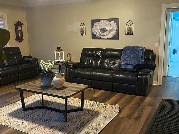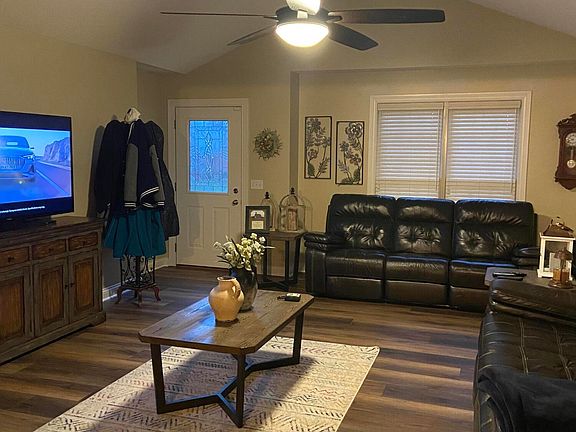 Nice ranch home located on huge cul-de-sac lot, w/walk-UP Fin basement, just off Hwy 245, near the hospital. You will love the vaulted ceiling in spacious LivRm, tray ceiling Primary BD along w/the Nucore vinyl plank flooring in all bedrooms &entire basement. Primary BD offers nice walk-in closet. Kitchen features lots of painted cabinets, bar area for stools, pantry, & appliances, (stove, refr, DW, microwave). Finished Basement can make for a nice mother-in-law suite, etc, w/LivRm-gas FP, kitchen(lots of cabinets), adl room that can be used as bedroom, full bath and laundry area, plus lots of storage.