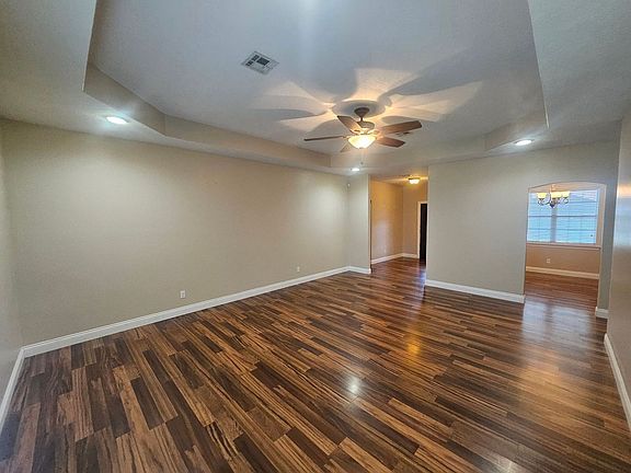 This inviting 3-bedroom, 2-bath home in DeRidder offers over 1,900 square feet of well-laid-out living space in the highly sought-after Rosepine School Districtjust 25 minutes from Fort Polk's main gate. The main living areas feature warm wood flooring, while the bedrooms offer soft carpeting for added comfort. The kitchen is both functional and welcoming, with tile floors, granite countertops, abundant cabinet space, and a breakfast bar that flows into a cheerful eat-in dining area. A dedicated laundry room with upper cabinets provides convenient extra storage. The living room is bright and open, with trey ceilings and ceiling fans for a relaxed feel. The primary suite feels calm and private, complete with recessed lighting, trey ceilings, and an ensuite bath featuring a jacuzzi tub, separate shower, walk-in closet, and a large vanity with plenty of counter and storage space. 2 additional bedrooms are good sized with ceiling fans and carpet for comfort. The secondary bathroom is clean and practical, with a tub/shower combo and spacious vanity. Outside, you'll find a peaceful fenced backyard, a two-car garage, and additional parking. This pet-friendly home blends everyday functionality with a comfortable, laid-back atmosphereperfect for settling in and feeling at home.
