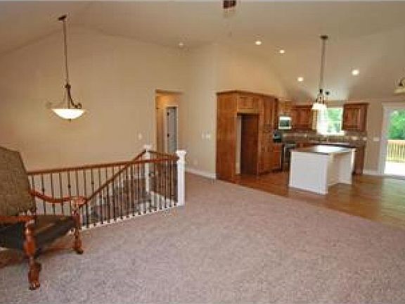 Very popular open floor plan. 4 bedrooms, 3 baths. 1 bedroom, bath & rec rm in walkout basement. Center isle in Kitchen. Great master walk-in closet, built-ins and double vanity in master bath. Stairs off covered deck. High energy efficient furnace. Oversized lot in great location. Over 2000 sq ft finished per builder.