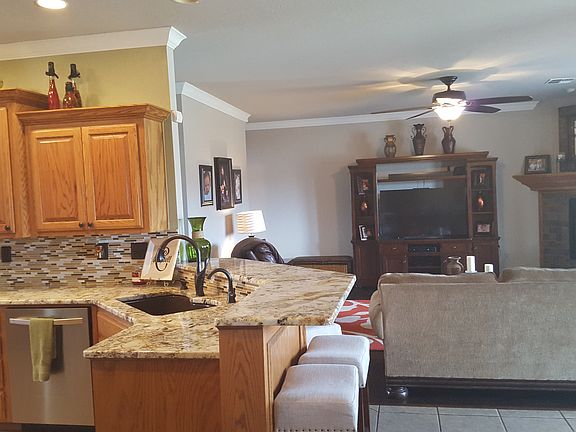 Gorgeous home on corner lot . This 4 bedroom 2.5 bath home has side entrance garage and all the great updates buyers desire. The home has a beautiful welcoming foyer with lots of natural light. There is new wide plank wood flooring in entrance , formal dining room and the large living area. Living room has a corner gas fireplace and lots of windows. The living room is open to kitchen dining area and the breakfast bar. Great for entertaining. The kitchen has stainless appliances ,including a double oven. Flowing granite counter tops and cut class back splash leave nothing to be desired. There is an under mount sink, oil rubbed bronze fixtures and reverse osmosis to sink and fridge , plus whole house water sofetner . The RO is a must have in this area. Custom cabinets with built in pantry spaces and tall uppers make the design of kitchen truly impressive. The formal dining room has a large window for natural light, There is crown molding and custom wide chair rail , a beautiful light fixture and french doors . The master suite is very spacious and private and has trey ceilings complete with crown trim and an awesome master en-suite featuring a jetted tub, walk-in shower , water closet , double vanities and a huge walk in closet with hamper that open to laundry room. The other 3 bedrooms are large in size , Each has its own walk-in organized closet space and 2 of the bedrooms have the custom chair rail. Rooms look like something out of a pottery barn advertisement. These bed rooms share a large full bath with double vanities and shower tub combination. Outside the home sits on a large corner lot . Recently landscaped front and side yard . Backyard has covered patio area and big fenced back yard . Call SHOYA GARRISON at 580.481.8174 or email me at shoya.garrison@century21.com!!!