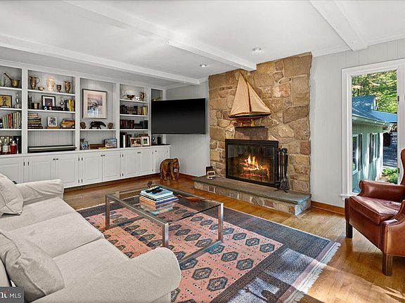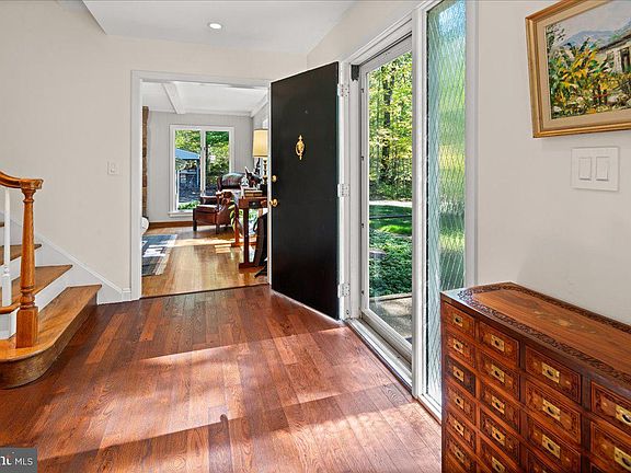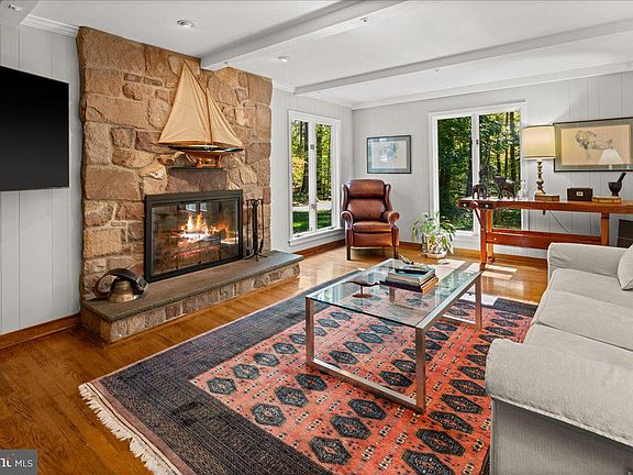 Set on a two-acre corner lot in the scenic Princeton Ridge, directly across from the wooded trails of Witherspoon Woods, this stately Colonial blends natural surroundings with versatile living space. Designed with a long, graceful façade and clean architectural lines, the home offers a timeless presence while opening to beautifully landscaped grounds and a sparkling inground pool. Inside, the main level showcases hardwood floors throughout, beginning with a central hall entry that leads to a formal living room, formal dining room, and a family room anchored by a dramatic floor-to-ceiling stone fireplace. The eat-in kitchen features white cabinetry, stainless steel appliances, a center island, and dual French doors—one opening to the backyard and another to a vaulted screened porch overlooking the pool and gardens. Additional main floor highlights include a dual glass-door office, plus a flexible sixth bedroom currently used as a yoga room with an attached full bath and direct pool access. A powder room, laundry/mudroom, and a two-car side-entry garage with epoxied flooring complete this level. Across the driveway, a detached two-car garage offers bonus storage or workshop space. Upstairs, five bedrooms include a serene primary suite with an updated bath, while four additional bedrooms share two hall baths. Hardwood floors continue throughout the upper level, creating warmth and continuity across the home. The location is equally impressive, offering easy commutes to Princeton's renowned private schools as well as the highly regarded Princeton public school system. Just minutes from downtown, the property enjoys direct access of the Witherspoon Woods - a scenic network of trails dotted with massive boulders perfect for climbing, hiding and exploring, making it a favorite for children and nature enthusiasts alike. Blending convenience, natural beauty, and academic excellence, this home offers the best of Princeton living.