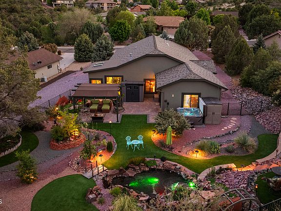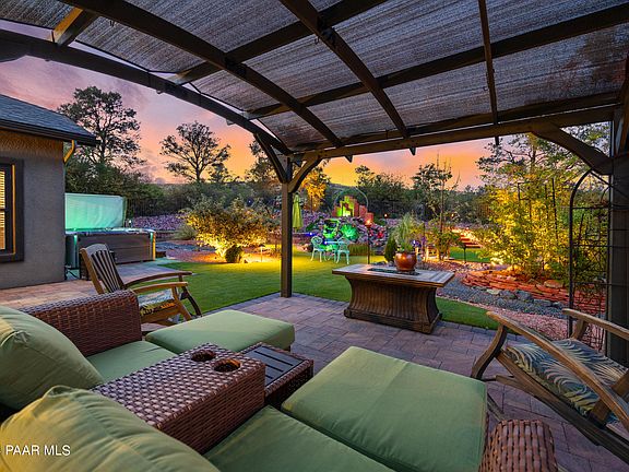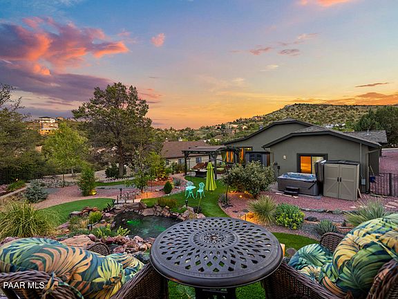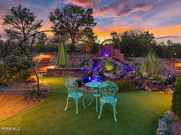 Situated in the highly desirable Yavapai Hills, this beautiful home boasts outstanding curb appeal and a private, park-like backyard oasis. Upon entering, you're greeted by a formal dining/sitting room just off the foyer. The kitchen features wood-grain cabinetry, a stainless-steel appliance suite with a 5-burner gas range and double oven, rich granite counters, pantry, informal dining area and a breakfast bar. The great room highlights a floor-to-ceiling stack stone fireplace with a custom granite hearth, lush carpeting and abundant recessed lighting. The spacious master suite offers dedicated access to the rear patio and entrance to the incredible backyard sanctuary. The spa-like master bathroom includes double closets, large soaking tub, double basin granite vanity and walk-in shower.
