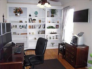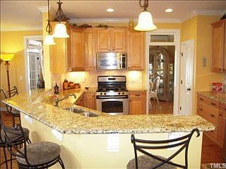 Executive home with wrap around porch for winding down.Kitchen features stainless appliances Fridge,stove, microwave & dishwasher.Separate dining.Study with built in bookcases.Master with screened porch off and 3 good sized bedrooms up plus bonus & loft bonus.3rd floor storage.Home located within minutes of 540,440,264,shopping & restaurants. Pool clubhouse playground community.