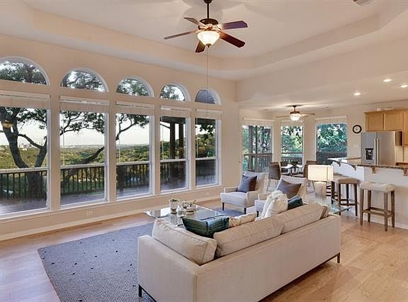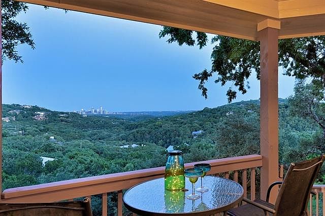 DOWNTOWN VIEWS!!! Impeccably maintained, over-under floor plan perfectly situated to take advantage of spectacular downtown views from both levels. Lives like a 1 story, entry on main floor, including master & study. 3 BR/2BA, media/game room & large unfinished bonus/storage/shop area on lower level. Flat side yard with views from pool, outdoor fireplace, & built-in grill areas. Only 5 minutes to Lake Austin. Low Tax rate! Co-Listing agent is owner.