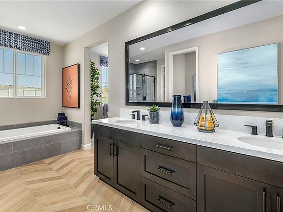 QUICK MOVE IN HOME for September! Incredible Mountain Views!! Brand new Energy Star 5 bedroom in Alessandro Heights! Easy access to SR-91, shopping, retail, and restaurants. Large entry patio that allows you to bring the outdoors in. Create lasting memories in your new great room - perfect for game nights, movie nights, and entertaining. The primary bath features dual vanities and a spacious walk-in closet. Fifth bedroom located on the main floor great for guests or an at home office. Gourmet kitchen boasts an oversized kitchen island, stainless steel built-in appliance package and stunning quartz countertops. This home also offers a spacious covered patio at rear that is perfect for outdoor dining and activities and a 3-car garage. The breathtaking community wide views will make you feel right at home!