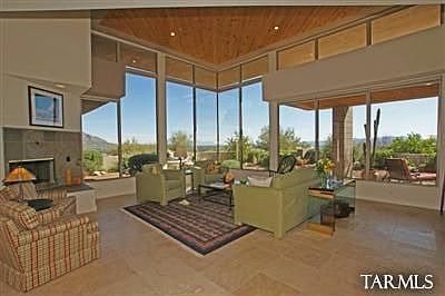 For more information on this property, contact the Listing Agent, Silvia Coggin at (520) 465-8175 or silviacoggin@wbhsi.net. Stunning Kevin B Howard design! Sweeping mountain and valley views from this incredible contemporary home. Soaring 14' ceilings and walls of windows. Gourmet kitchen with granite island and countertops, 2 DW, 2 refrigerators & cherry cabinets galore; open great room and dining room, inviting master suite w/sitting area and private covered patio; cozy den and spacious 2 guest bedrooms. Great outdoors offers FPL, grill, spa with waterfall and large patio for relaxation and entertaining. Value at its best in this desirable gated community.