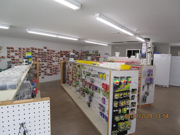 1540 sq ft of commercial property only 2 years old-- Close to the entrance of DAVY CROCKETT PARK, property has a propane gas setup for the campers. There is over 3 acres with this property a great location to build storage building This property has many possible uses. Walk in cooler could be included with sale. Presently primary use is as a bait shop, this inventory could be purchase separately