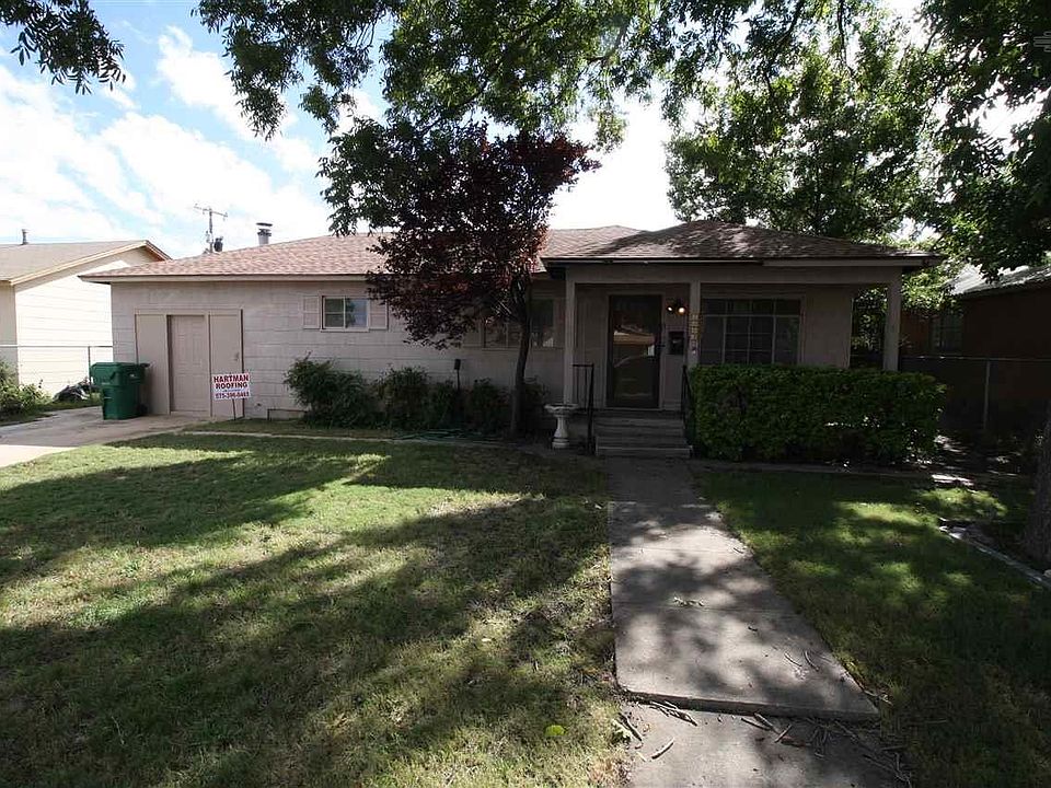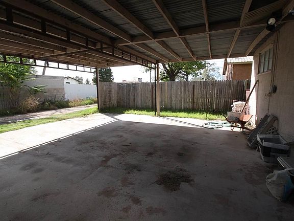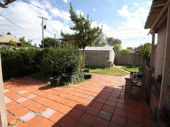 Nice starter Home, has Livingroom, Dining area off kitchen, Large Utility Room, 3 Bedroom 1 3/4 Bath, Fenced Yard with landscaping and storage building. Also has 2 car carport in rear of home with alley access.