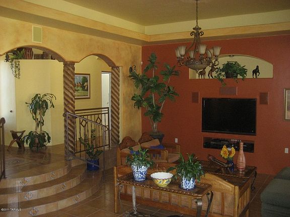For more information on this property, contact the Listing Agent, Gregg Maul at (520) 471-8088 or gmaul@flash.net. PRICE REDUCED $100K UNDER APPRAISED VALUE! Custom built home with covered entry, open floor plan, exposed beam ceilings, custom carved wood Vega beams, custom interior faux paint, wood laminate floors in guest home. French doors, tile flooring w/custom Talavera tile inlay, recessed lights and high end double pane windows. Alder wood cabinetry, tile counters & backsplash w/custom inlay and mural tiles, stainless steel GE Profile appliances. Home theater, game room and attached guest Home. Almost one full acre behind home, walled,for a pool, tennis court, you name it. Great views, enclosed walk way between home and guest house. Guest home has over 800 extra square ft not in SF. however Guest house itself is in SF. Total SF is over 5300 SF. All Agents, please read agent remarks.