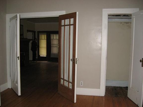 Selling "As Is". She was grand once and could be again. Feel the sense of days long past in this home with many WWI era custom architectural details, with original woodwork, hardwood floors, brick fireplace, claw foot tub, large windows, and high ceilings. Home is in need of rehab but worth the work. (Oak cabinets in the kitchen are not original feature of the house.)