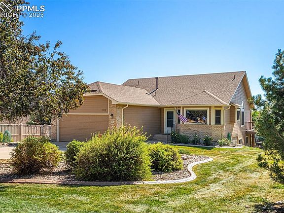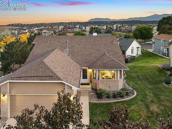 Pride of ownership shines in this meticulously maintained home, lovingly cared for by its original owner. Nestled in a beautifully maintained community in the heart of Rockrimmon that takes care of snow removal and lawn care, this residence offers low-maintenance living at its finest. Step inside to a spacious living room featuring a cozy gas fireplace, vaulted ceilings, and a seamless walkout to the extended composite deck—perfect for enjoying breathtaking Pikes Peak views. The well-appointed kitchen boasts a walk-in pantry, sunny dining nook, and ample counter space, while the formal dining area provides the ideal setting for gatherings. The primary suite is a true retreat with a private bath, large shower, and walk-in closet. A second bedroom plus an office/den (easily converted to a third bedroom) provide flexibility to suit your needs. The large laundry room on the main level features a utility sink for added convenience. Outdoor enthusiasts and pet lovers will appreciate the expansive lot with two dog runs, while the unfinished walk-out basement offers endless possibilities for storage or future expansion. Additional highlights include a 2-car garage and a security system for peace of mind. Don’t miss this rare opportunity to own a meticulously maintained home with breathtaking views, ample space, and a low-maintenance lifestyle. Located in desirable Rockrimmon neighborhood nearby hiking, biking, shopping, dining and esteemed Academy District 20 schools, plus convenient access to I-25 for an easy commute anywhere in town or Denver. Don't miss this spectacular home, schedule your showing today!