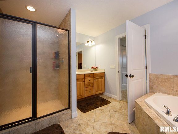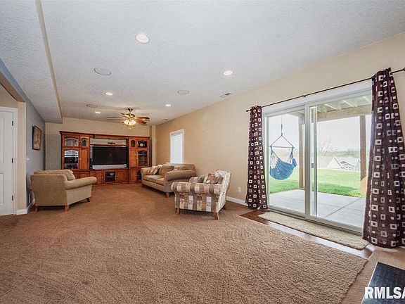Stunning 2 story home in Le Claire, IA This home features 4 bedrooms, den/office, 4 bathrooms, 3 car heated garage and walk out basement. Main level: Open floor plan with custom built in's in the great room, sliding doors to the deck (with a beautiful view of sunsets), laundry, den/office, the kitchen has a breakfast bar, corian counter tops with undercount sink, pantry and built in desk/media center. Upper level: 4 bedrooms (all have double wide closets). The master suite has a 12x12 walk in closet! Ceramic walk in shower, double sinks, and jetted tub. Basement level: Fitness area and finished recreation room with sliding doors to walk out patio to the fenced yard. Appliances stay with acceptable offer.