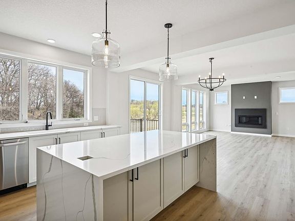 Come experience the excitement of building a new home without all the hassle. Beautiful selections have already been chosen for this two-story modern farmhouse. A light-filled open-concept main floor with stainless steel LG appliances and vented hood, waterfall quartz island, ceramic tile backsplash and walk-in pantry complete the large kitchen. The family room offers the warmth of a gas fireplace with granite surround and mantle.