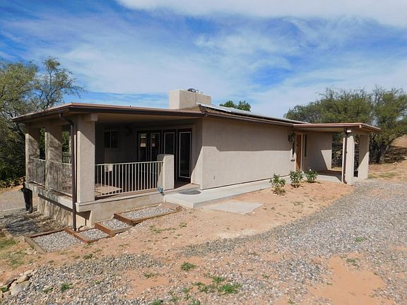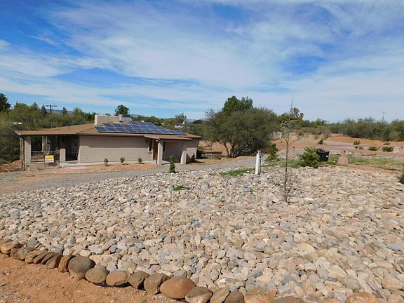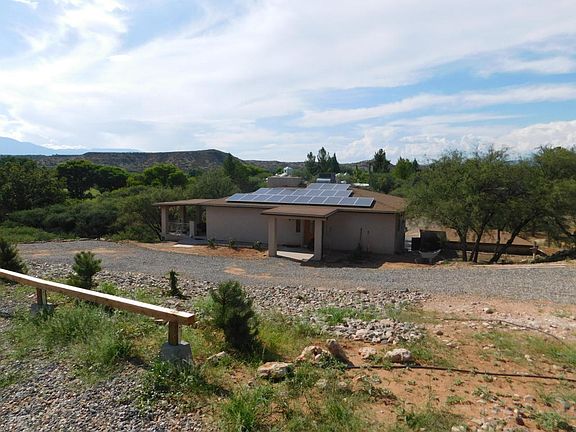 Serene setting with pastoral views near Oak Creek (approx. 400 ft. as the bird flies). A mile from the community center of Cornville. On 1.26 acres with animal privileges. North side of house is in a mock Southern-plantation style. Has a spiral staircase, wraparound veranda, and such modern amenities as a reverse osmosis and electric solar panels. It has three large bedrooms, three fireplaces (one in kitchen is covered by can be uncovered for use as a wood-burning pizza oven), 50-yr. laminate in bedrooms, tile flooring, granite countertops, huge kitchen with under-lit cupboards and back splash, shed, chicken coup, two-car garage with motion sensor lights, and very-recently re-landscaped exterior.