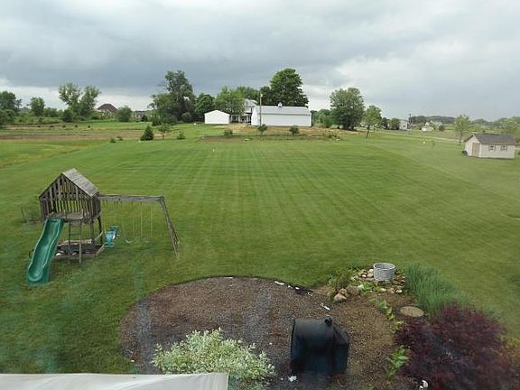 ***SERENITY ABOUNDS*** Don't wait to see this 4 bedroom, 3.5 bath Custom Built Home!!! From the moment you walk in...you'll be so pleased. Soaring ceilings accent the spacious 1st floor master complimented by a large soaking tub & Walk-In-Closet. 16 ft ceilings compliment the Great room with transom windows. The fully applianced kitchen boasts 42' in cabinets, raised corian counter tops and hardwood floors...Brand new SS Fridge-A-huge plus! The finished lower level offers lots of built-ins, tons of storage, a full bath and a true EGRESS window. Relax with a glass of Lemonade on the front porch or entertain family and friends on the concrete patio out back! 12 course block basement, solid 6 panel doors, 24x36 3 car garage, 210' deep well, lights in all closets. Country living, Ahhh!
