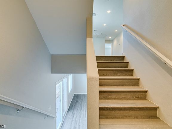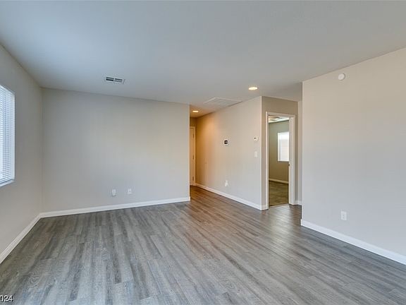 Have a look at this 3 Bedroom Gem in Mountains Edge. It is 100% move-in ready with BRAND NEW VINYL PLANK FLOORS and PAINT! This split level home has two master bedrooms, one upstairs and one downstairs, a huge kitchen island with granite counters, stainless steel appliances, and plenty of cabinet space for storage. The lower level features the 2nd master bedroom, an additional guest room, a massive family room and a spacious storage closet under the stairs. In addition, the rooftop deck has a gas BBQ stub, electrical and STRIP VIEWS and MOUNTAIN VIEWS. But there's more...There is an HOA approved parking pad in addition to the 2 car garage and the home is located next to a quiet corner of Nathaniel Jones park so you only have one neighbor! You have to see this home to believe it.