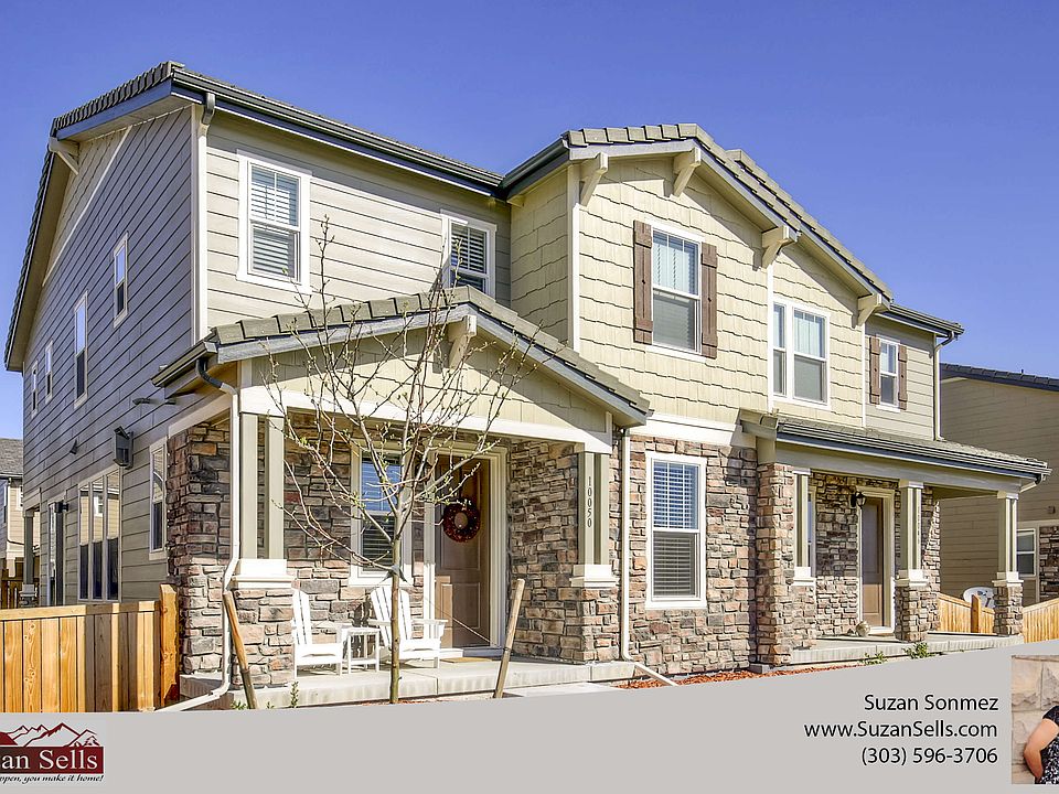 Paired Home in the Meridian District of Parker where peaceful and quiet luxury meet the perfect Parker location. You will love Meridian Village and this 3 bedroom, 3 bathroom has it all in this thoughtful layout. Upgraded flooring and many other upgrades through-out. The main level boasts an open style great room with living, dining, and kitchen flowing nicely making this the perfect space for entertaining along with convenient powder room and study/flex space. The kitchen is the heart of the home featuring large center island, beautiful Quartz counter tops, and stylish pendant lighting. Upstairs the master suite is your oasis spacious enough for many furniture layout options with private 5 piece bath along with two additional sizable beds and another full bath. Private front porch and large fenced side patio, attached 2 car garage, newer flooring and newer window treatments throughout.Close to shopping and dining at Park Meadows.