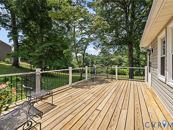 **APPRAISED AT $409,000...that's $9,100 IN INSTANT EQUITY!!** Welcome to 10050 South General Blvd in North Chesterfield, where you will find a ranch style home with 4 bedrooms, 2 full bathrooms, 3 LOTS TOTALING 1 ACRE WITH POND VIEWS, TWO decks, NEWER Window World windows with a LIFETIME transferrable warranty, & so much more! This property has so much curb appeal from the immaculate lawn and landscaping, a horseshoe driveway, brick & vinyl siding, a newly rebuilt deck with vinyl railings, newer vinyl energy efficient windows, & of course the view of the small pond, making this property truly a peaceful escape from the outside world. Step onto the spacious front deck and into the home and you are greeted by beautiful hardwood flooring in the living room, fresh paint, a lighted ceiling fan, plantation blinds, and a brick gas fireplace with mantle. Next is the eat-in kitchen-the heart of the home-with a HUGE peninsula with room for bar seating, updated cabinetry, stainless steel range and microwave, a pantry with custom built shelving, crown moulding, & a dining room area with another gas fireplace, POND VIEWS, & sliding glass door access to the back deck that overlooks the serene landscape. Down the hall, is the hall bathroom with newer LVP flooring & a tub/shower combination. The Primary Bedroom Suite boasts a custom-built & upholstered reading nook with storage bench, 2 frosted glass door closets, hardwood floors, & an en-suite full bath with LVP & a tub/shower combination. The conveniently located & updated laundry area has floating shelving and room for storage with LVP flooring. There are 3 additional bedrooms that all have NEW carpet, closets, & lighted ceiling fans. Outdoors & under the back deck is a gravel patio that leads to the partial basement & workshop, oh the possibilities! Don't miss out on this unicorn of a property, schedule your showing ASAP!