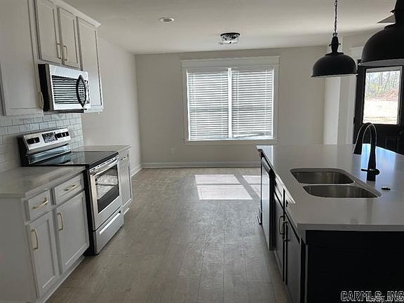 Great Price!! Must see this beautifully decorated, 3BR, 2BA new construction, home with open floor plan. Features large breakfast bar with granite counter tops, formal dining room and corner fireplace in living area. Master bath has double vanities and huge walkin closet. Builder has installed blinds. Brick and stone exterior with covered back porch on one acre lot. Located in Bryant school district and qualifies for 100% Rural Development financing.