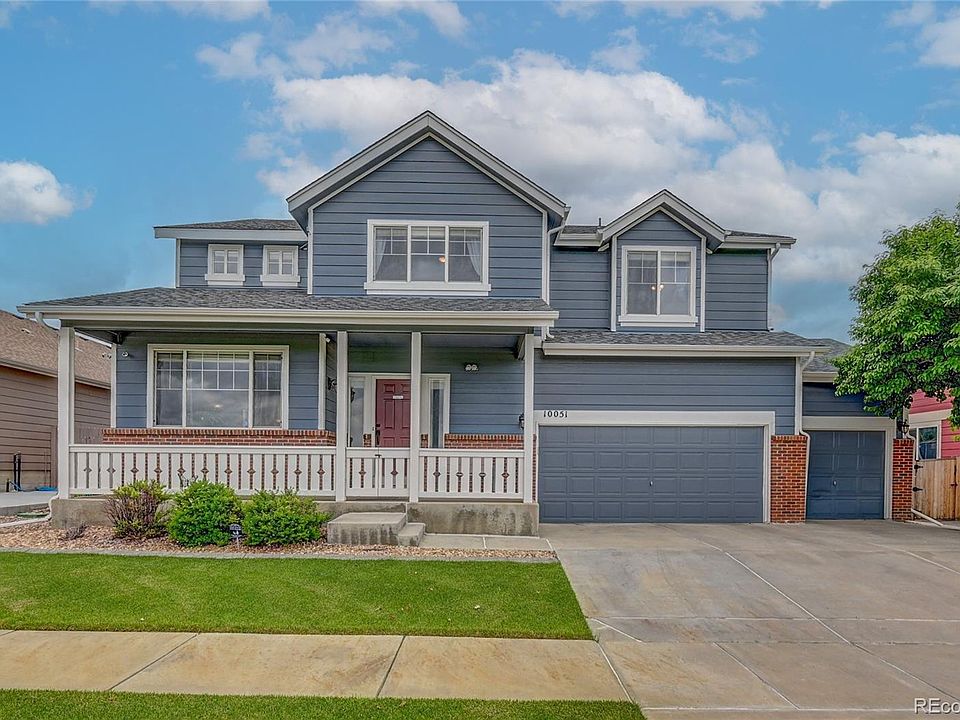 This beautiful 4 bedroom 3 bath home in Fronterra Village is one that has to be seen in person to be truly appreciated. These homeowners have done it all, and they have done it to the highest quality and standard. As you enter this home you immediately notice the 9' ceilings throughout. The large windows allow for natural sunlight into the home. The front formal living room opens into the formal dining room with plenty of space for entertaining. The kitchen has been updated with quarts counters, tile backsplash, a 8' quarts counter top island, and 41" beautiful cabinets. As you walk through the kitchen into the grand living room your eyes are drawn to the stunning 19' foot decorative wall with a gas fireplace. As you travel upstairs you find a primary suite that is situated on the south side of the home giving privacy from the other three bedrooms. The primary suite has a full bathroom and large walk-in closet. The basement has been left untouched for the new home owner to finish to their liking. Location, Location, Location!!!! This home is located across the street from Fronterra Park, Otho E. Stuart Middle School and Second Creek Elementary School. A short drive to DIA, E-470, shopping, dining and The Gaylord hotel.