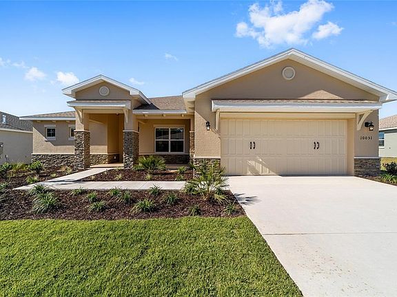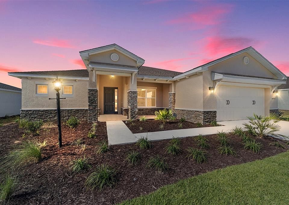 Discover exceptional 55+ living in this captivating, brand new Livingston model, perfectly situated in Longleaf Ridge at On Top of the World. This stunning home provides 1,718 square feet of meticulously designed space, featuring 2 Bedrooms, 2 Bathrooms, and a generous 2-Car Garage with a dedicated Golf Cart Space. The expansive, open-concept layout includes a welcoming Great Room, a bright Breakfast Area, and a versatile Flex Room—ideal for a den, office, or creative space. The heart of the home, the gourmet kitchen, is truly a chef's dream, boasting elegant cabinetry, premium quartz countertops, an oversized island, new stainless steel appliances, and sophisticated under-cabinet lighting for both ambiance and functionality. The luxurious Master Suite Bathroom is a spa-like retreat, offering a spacious walk-in shower and convenient double vanity sinks. Throughout the main living areas, you'll find beautiful tile flooring and ample natural light. Enjoy Florida's beautiful climate from your private, enclosed patio, perfect for relaxation or casual entertaining. This home is completely move-in ready, offering modern elegance and immediate access to all the world-class amenities of this premier community! On Top of the World is Ocala's premier 55+ active adult, golf community with golf cart access to shopping, banking, restaurants, health and beauty.