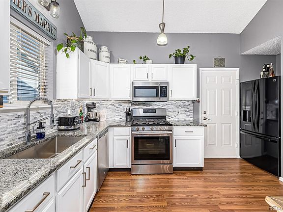 The search is finally over! This fabulous 4 bed, 2 bath multi-level property in Thornton is the one! Located just a few minutes away from restaurants, parks, and markets. Discover an impressive interior featuring wood floors, neutral palate throughout, recessed lighting, and high-vaulted ceilings. You'll love cooking in this beautiful kitchen offering white cabinetry, granite counters, stainless steel appliances, and stylish mosaic backsplash. Don't forget the finished basement for added convenience! The lovely backyard will be your favorite spot for hosting fun gatherings and is ready for your personal touch. This home boast many upgrades you don't want to miss it, it won't last long!