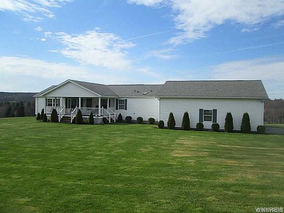 Newer well cared for home in a picturesque country setting w/ panoramic views of the surrounding hills & farms between Ellicottville and Jamestown. A ranch style home with all the bells and whistles. Includes cathedral ceilings, skylight, full concrete walkout heated basement, oversized 32 x 24 2 car heated garage , blacktop driveway, large covered front porch plus back deck, storage shed, central A/C, architectural shingles, storage shed & more. Sold with an upgraded full appliance package. Security system with camera's. Some furnishings are negotiable. A great central location to live.