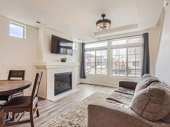Contemporary 2 story home on a corner lot in beautiful Reunion, practically new, yet ready for move in today - less than 3 years old. Naturally lit throughout with an open concept floor plan, hardwood flooring throughout the main, gorgeous fixture upgrades and 2 car attached garage w/ storage - this home truly will not disappoint. The main floor offers a private powder room, a light and bright living room w custom ceiling fan & gas fireplace, dining room, and a gorgeous kitchen that has an expansive granite island w island seating, custom pendant lighting, sleek shaker cabinets, spacious pantry, stainless steel appliances w gas stove and access to the fully fenced backyard. The perfect floor plan, ready to meet all of your entertaining needs! On the second level you will find a private primary en-suite with a walk-in closet and stunning full bathroom w a large shower, a spacious second bedroom w walk-in closet plus another updated full bathroom, a cozy bonus loft space with custom window coverings and the large laundry room. Upon ascent to the third level you will find an expansive rooftop deck w gorgeous views, a sun sail to provide shade, plenty of seating and dining space plus hookups for a hot tub! The Reunion community offers an incredible amount of amenities, just 15 minutes from DIA, 30 minutes from Denver, and 45 minutes from the mountains! With over 150 acres of parks, 10 miles of trails, 8 acres of lakes/waterfalls and 170 acres of open space there is plenty to explore here! Really embrace that outdoor Colorado lifestyle! Additionally, The Reunion Rec Center features an indoor gymnasium, full fitness center and workout classes plus an outdoor pool. The Southlawn Pool offers a secondary outdoor option to the Reunion residents! Not only that, but you have grocery, coffee, breweries, restaurants, and shopping all at your fingertips here! Call for your private tour today!