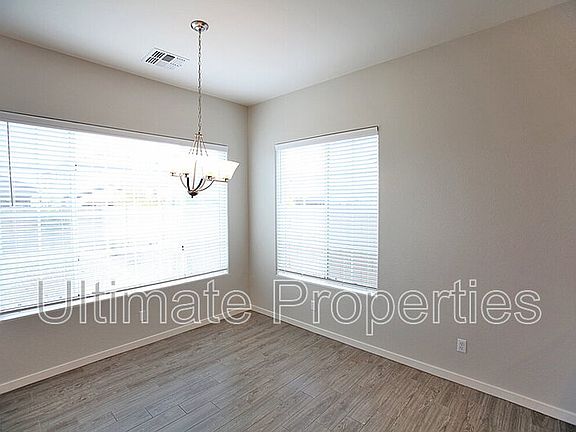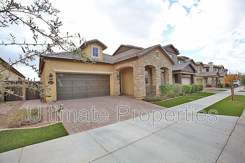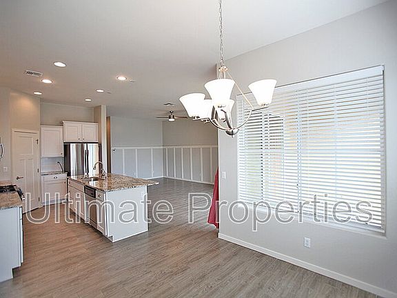 Fall in love with this meticulously maintained home featuring elegant wood plank tile throughout and plush carpet in all bedrooms. The chef's kitchen showcases a stunning granite island, crisp white cabinetry with designer hardware, sleek subway tile backsplash, and a complete stainless steel appliance package including refrigerator, range/oven, built-in microwave, and dishwasher. The spacious master retreat offers the ultimate in comfort with a bathroom featuring a separate soaking tub and shower, dual vanity sinks, convenient powder station, generous walk-in closet, and private water closet. Enjoy indoor/outdoor living with a thoughtfully designed backyard offering both lush grass and low-maintenance desert landscaping. The home's curb appeal is enhanced by an attractive pavered driveway leading to the two-car garage. Washer and dryer included! Schedule your viewing today exceptional properties like this don't remain available for long! Enjoy access to resort-style amenities including swimming pools, basketball and tennis courts, playgrounds, parks, and a vibrant community center.