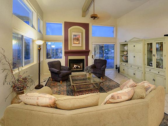 Views! Views!Views! Spectacular unobstructed Pusch Ridge views in ''The Ridge'' in gated La Reserve Community. Charming, single story, 2 Bedroom, 2 Bath home w/private gated flagstone front courtyard. Updated kitchen w/breakfast area and sliding glass door opening to side yard. Vaulted ceiling in Greatroom/Dining area with fireplace. Over sized windows and patio door opens to charming covered patio. Master suite has vaulted ceiling, large closet, double sink,soaking tub and separate shower.Glass doors open to back patio. Spacious second bedroom and Hall bath with shower. Fabulous backyard with flagstone,spool, built in BBQ, beehive FP, low care landscaping and incredible vistas and amazing Pusch Ridge views! All appliances included and some furniture available for sale. A true charmer!