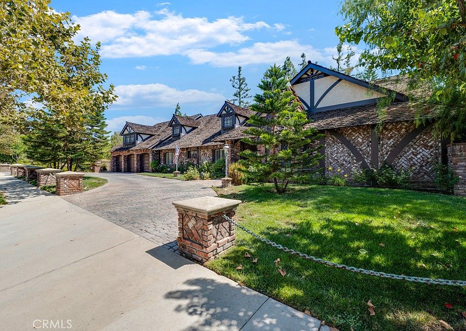 Welcome to Buckingham Estates, one of the most distinguished communities in Northridge, an exclusive community of 42 premier homes. This home is one of the crown jewels of Northridge, Don McKittrick built as his private residence. Architecturally stunning single story Tudor, old world charm, craftsmanship and character abound. At nearly 4500 sq ft on a 17,600 sq ft lot, 4 bedrooms, 5 baths, Library, Family Room and more. Elegant and oh so prestigious! Dormer windows, copper roof accents, copper lamp posts and brick accents. Coffered ceilings, gridded beamed ceilings, floor to ceiling paneled walls and walls of windows. Exceptionally open floor plan, the rooms are so perfectly placed, formal dining room, family room, wet bar & large kitchen with a view of the backyard. This chef's kitchen has abundant cabinets and counter space. Oversized, a perfect place to prepare meals and still mingle with guests. No expense spared when this home was built, herringbone wood floors and plank hardwood flooring throughout, exquisite details on this thoughtful floor plan. Impressive grand used brick entry, master suite with a wall of closets and ensuite bathroom with soaking tub and free standing shower. Each bedroom has an ensuite bath, most with walk in closets. Could be dual primary bedrooms. The perfect floor-plan for entertaining, & memory making. Stunning dramatic wood panelled, Library and 4th bedroom on opposite side of the house is so versatile, could easily be an in-law suite or completely separate guest wing with private entrance. 4th bedroom could likely be divided and you'd gain a 5th bedroom. Claw foot free standing soaking tub, also with separate shower. Resort style backyard, large private patio area, lawn, mature landscaping, towering trees, with large pool & and bridge. This entertainer's backyard has enough space for most any activity, so very peaceful and private! Stunning copper roofs and turret style outdoor 3/4 bathroom Other features: circle driveway & 3 car oversized garage. Walk to award winning schools, shopping, farmers market, restaurants and transportation.
