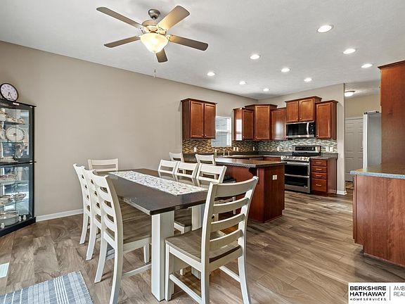 This stunning 1.5-story home offers the perfect blend of comfort, space, and potential. Ideal for a large or growing family. The partially unfinished basement is a great opportunity to add equity or customize. Step outside to an amazing backyard- perfect for entertaining or relaxing. The home sits on a desirable walkout lot, offering easy outdoor access and natural light in the basement. Car lovers will appreciate the oversized third garage stall with extra depth- fit up to four vehicles during NE hail storms. The garage features 8-foot insulated doors, helping it stay warm year-round without extra heating. Upstairs, the loft area adds even more versatility. Need another bedroom? Plans are included in the associated docs. This home checks all the boxes: move-in ready with space to expand, designed for everyday living and long-term flexibility.