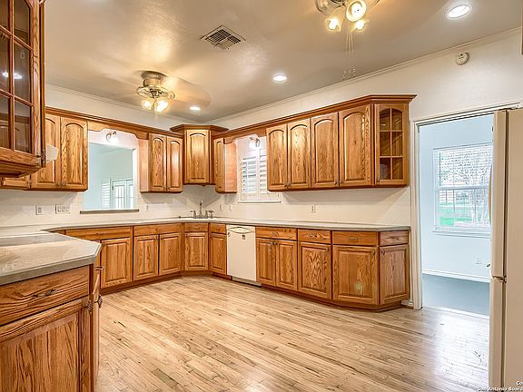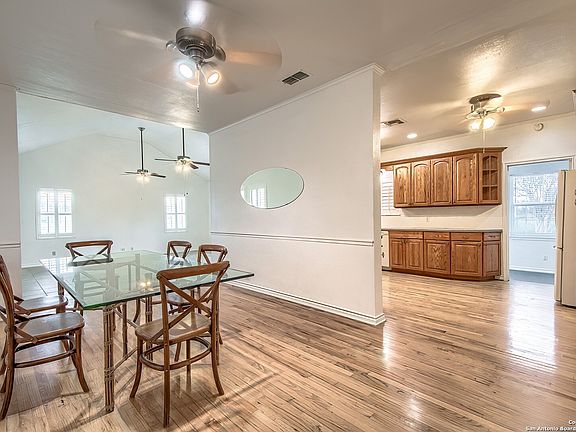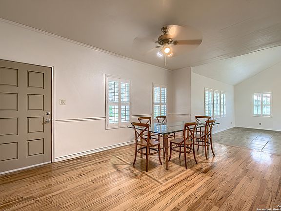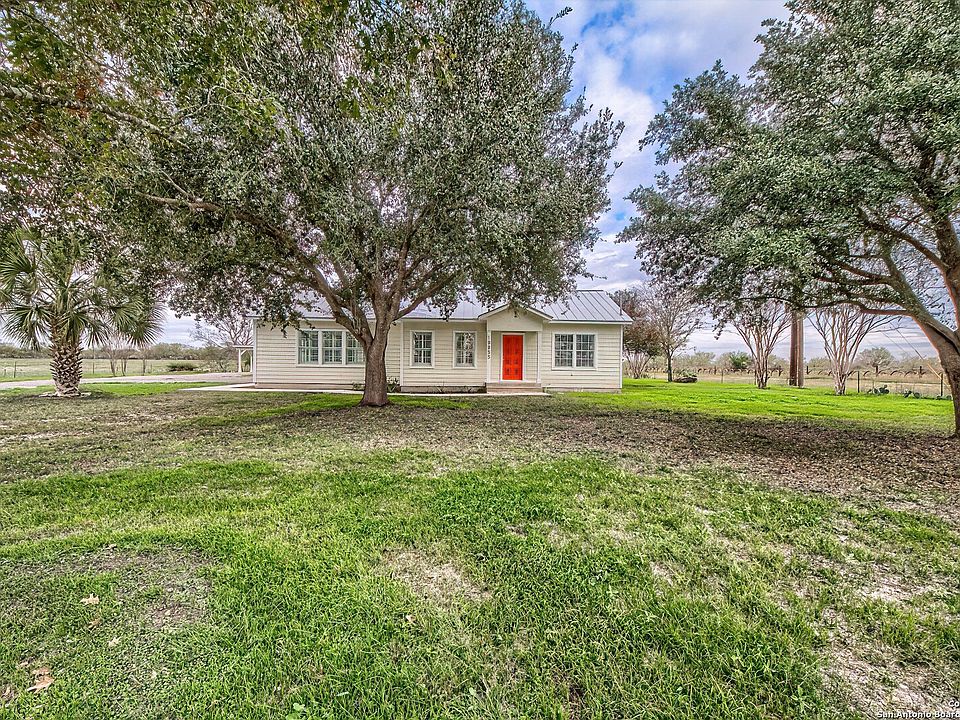 This charming farmhouse has room for your family, the in-laws or a renter to help with the mortgage! With .80 of an acre, you can have a nice sized garden and room for your fur babies to run around. Main house has 3 bedrooms, with 1 bathroom. Colonial shutters and hard floors throughout. Custom cabinets in the kitchen which provides ample storage! Spacious laundry room/mudroom with its own entrance. The remodel of the guest house was completed in October 2023. Be the first to enjoy the quartz countertops custom cabinets recessed lighting and LVP flooring. French doors lead you into a spacious sunroom with picture windows that face East so you can sip your favorite beverage and enjoy the beautiful sunrises. Schedule a showing today! (Photography done by Alamo Area Virtual Tours)
