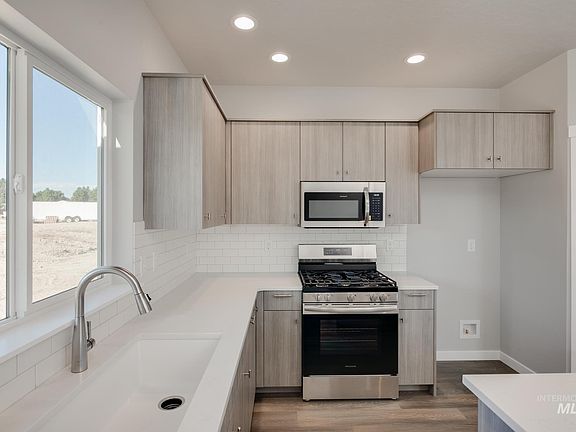 This new home located in beautiful Boise, Idaho has all the comforts you need & more! The Willow 1860's single level space is smartly laid out, boasting two bedrooms situated at the front of the home. To entertain or for personal relaxation, escape into the spacious vaulted great room and dining room that open onto a back patio. The kitchen boasts upgraded finishes, including stainless steel appliances, a gas range, and stylish solid surface countertops. Natural light cascades through the windows, adding an illuminated touch to the vaulted ceiling. Retreat to the primary suite for restful nights, complete with a roomy en suite bathroom, dual vanities, a stand-up shower, and a walk-in closet. Enjoy the luxury of the great room or warm nights under the stars – this one-of-a-kind home provides space for everyone! Photos are actual.