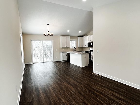 Open floor plan, featuring white, modern cabinets, luxury vinyl plank flooring, stainless steel appliances, 4 bedrooms, walk in closet in the master bedroom, partial basement and a 3 car garage. Home will sit on 10 beautiful acres, close to the freeway making for an easy commute!