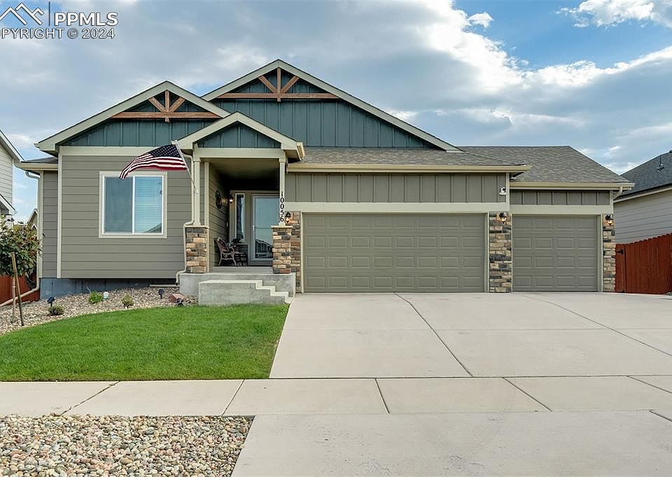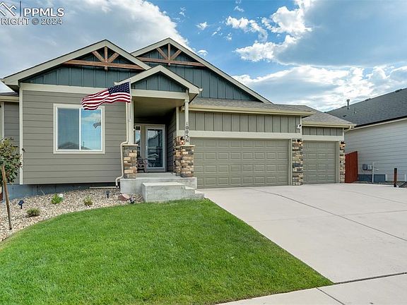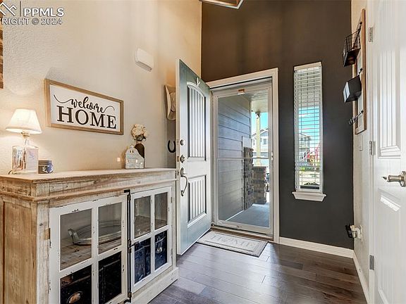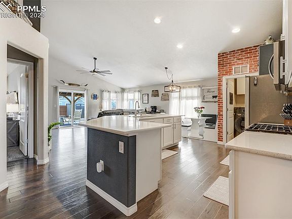 Step into this beautifully updated ranch-style home, offering a perfect blend of modern comfort and timeless elegance. This spacious 3,188 sq ft residence boasts 5 bedrooms, 3 bathrooms, and an oversized 3-car garage. The insulated and heated 3-car garage comes equipped with a level 2 EV charger, making it perfect for electric vehicles. Inside this well designed home, you'll find vaulted ceilings and an open floor plan that seamlessly connects the family room, dining area, and kitchen, all featuring stunning hardwood floors. The kitchen is a chef's delight with quartz countertops, a large island, and stainless steel appliances. Conveniently located off the kitchen is the laundry room with updated cabinets. The main level includes a luxurious master bedroom with vaulted ceilings, a 5-piece ensuite bathroom, and a walk-in closet. Two additional bedrooms and a full bathroom complete the main level. The finished basement offers a large rec room with a newly added custom wet bar, perfect for entertaining. Two more bedrooms and another full bathroom provide ample living space. Step outside to a beautifully landscaped backyard, featuring an elevated patio with a built-in wooden gazebo, ideal for outdoor dining and relaxation. The fully fenced yard includes a storage shed, adding convenience and functionality. Located in the desirable Meridian Ranch subdivision, residents enjoy access to a large rec center with both indoor and outdoor pools. The community offers 240 acres of trails and parks, as well as the award-winning Antler Creek Golf Course. With easy access to Highway 24 and Woodmen Road, you're just minutes away from shopping centers and other retail stores. This home offers a perfect blend of comfort and style, with thoughtful updates throughout.