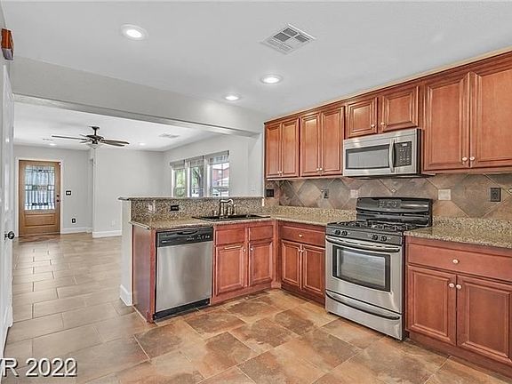 MOUNTAINS EDGE BEAUTY! ENJOY THE ABUNDANT PARKS AND HIKING TRAILS-CLOSE TO RED ROCK TOO- UPGRADED 2 BEDROOM + LOFT-BEAUTIFUL HARDWOOD & TILE FLOORING-KITCHEN HAS GRANITE COUNTERS AND TILE BACKSPLASH-S.S. APPLIANCES, LOTS OF CABINETS-DELUX PRIMARY SUITE WITH WOOD FLOORS AND WALK-IN CLOSET-SEPARATE TUB AND SHOWER AND DUAL VANITIES-UPSTAIRS LAUNDRY ROOM-COVERED PATIO WITH CEILING FAN-CHARMING BACKYARD.TANDEM TWO-CAR GARAGE.
