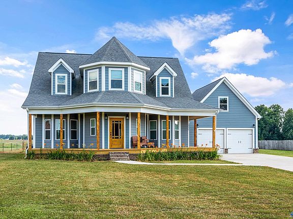 Enjoy stunning countryside views from this custom-built home, designed for energy efficiency with utility bills around $100/month. Enter through gorgeous mahogany doors to an open, airy living space with soaring 21' ceilings. The chef’s kitchen features a massive 120x30 island, granite countertops, stainless steel appliances, and a gas stove with downdraft. The luxurious master suite on the first floor includes a double shower and freestanding tub. Both porches have wood ceilings and floors. Energy-efficient with 30-year shingles and a gas tankless water heater.