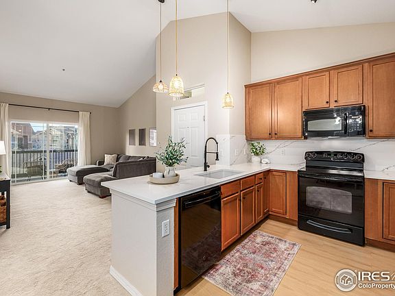OPEN HOUSE SATURDAY (4/20) FROM 1-3PM. COMPLIMENTARY 1-0 BUYDOWN IF BUYERS USE OUR PREFERRED LENDERS! Welcome to this top-floor, corner unit offering the epitome of comfortable living in the coveted Chatfield Bluffs Condo community. Boasting 2 bedrooms, 2 bathrooms, and a detached 1-car garage, this meticulously maintained residence is a true gem. Upon entry, you'll be greeted by an inviting open layout adorned with vaulted ceilings, accentuating the spaciousness of the living area. Unlike many condos in the area, this home features not one, but two private outdoor balconies, perfect for enjoying Colorado's beautiful weather. Additionally, two storage closets provide ample space for your belongings. Step into the kitchen, complete with black appliances, new fixtures, quartz countertops and backsplash. The living room is complete with a new electric fireplace wall and tv console. The master bedroom is a serene retreat, boasting a spacious closet with custom-built ins and an attached five-piece bathroom featuring a large soaking tub. A second bedroom and another full bathroom offer flexibility and convenience. HOA includes: Cable TV, Maintenance Grounds, Maintenance Structure, Sewer, Snow Removal, Trash, Water. The clubhouse offers a fitness center and pool. Located in close proximity to highway access, dining, trails for hiking or biking, shopping, and retail options, this condo offers the perfect blend of convenience and tranquility!